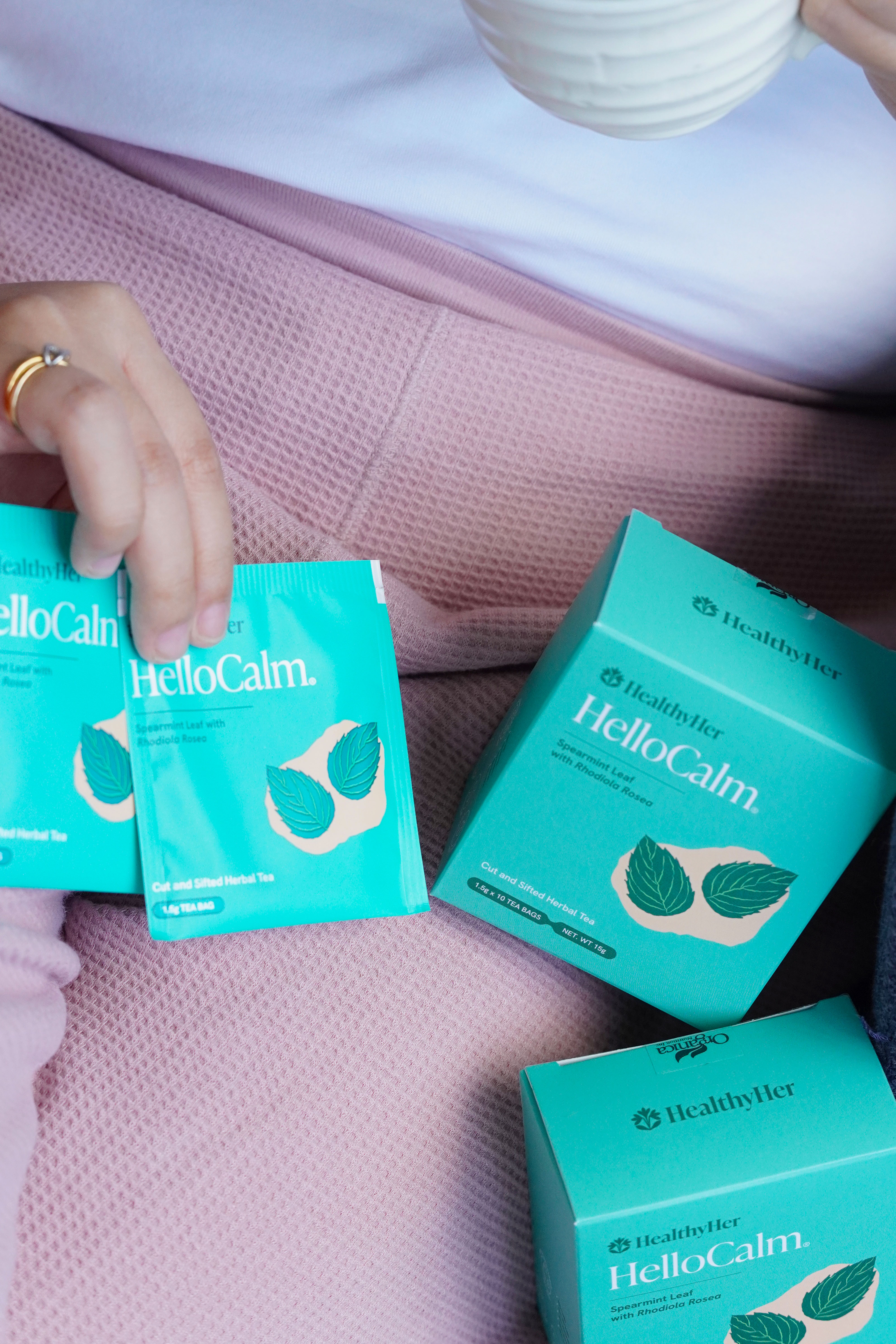 HelloCalm is an herbal tea blend crafted to target the root causes of hormonal acne and stress, which are the two primary things that tend to show up most when your hormones are out of balance. With Spearmint Leaf, Rhodiola Rosea, and Stevia Leaf, each cup is a calm, caffeine-free moment that supports clearer skin and a steadier mood from the inside out.